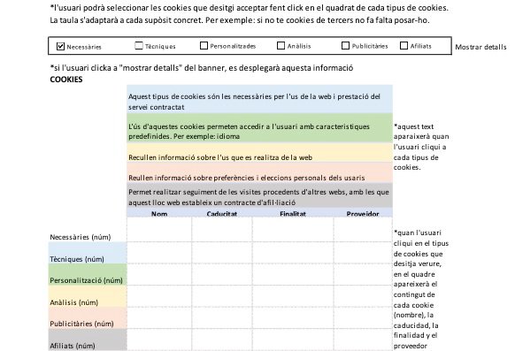 Según la directiva de la UE, las cookies que requieren el consentimiento informado por parte del usuario son las cookies de analítica y las de publicidad y afiliación, quedando exceptuadas las de carácter técnico y necesarias para el funcionamiento del sitio web o la prestación de servicios expresamente demandados por el usuario.